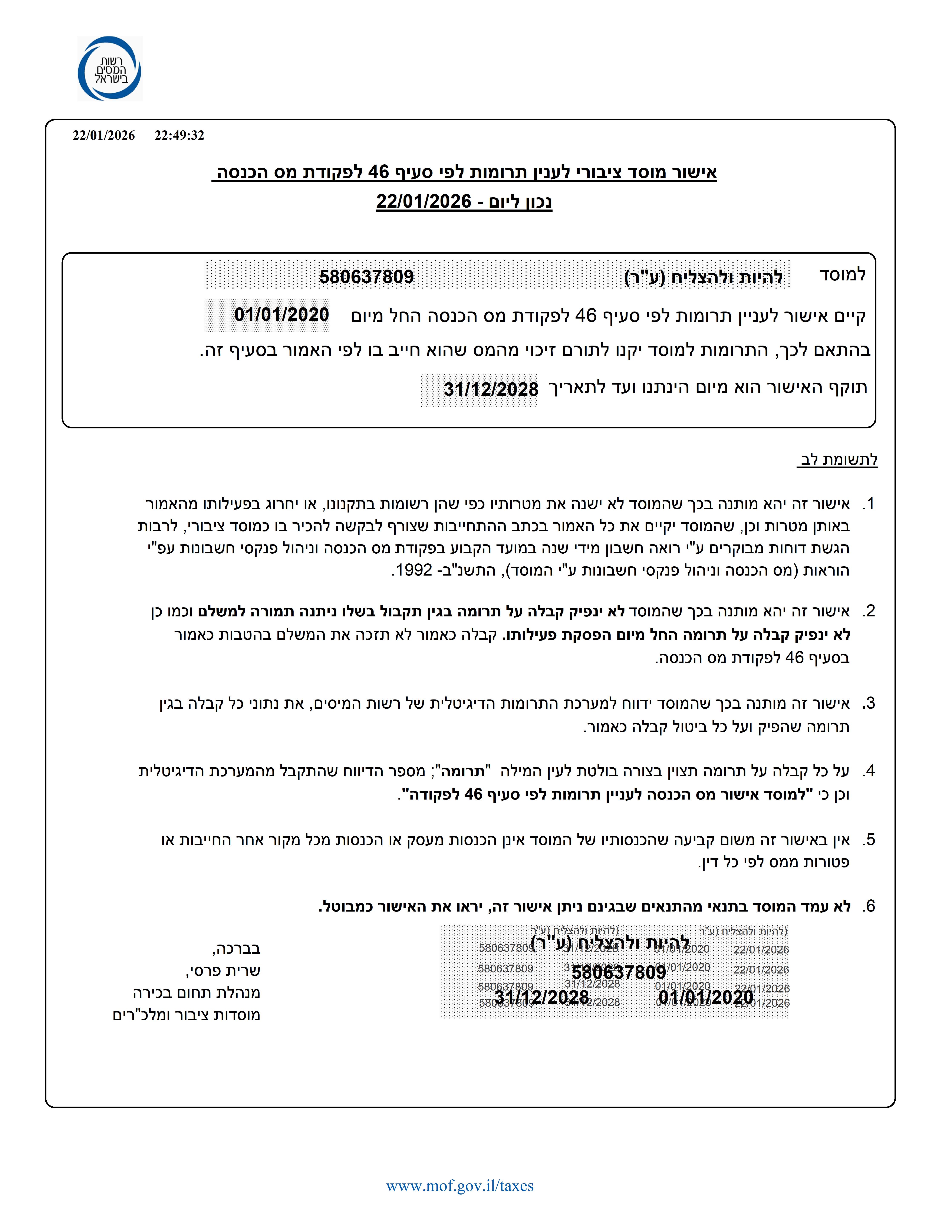 אישור לפי סעיף 46